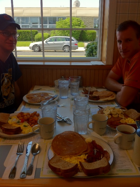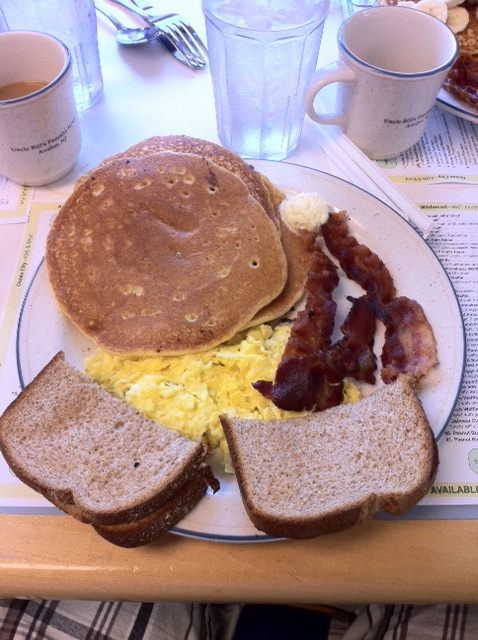 For breakfast food, Avalon offers two family breakfast joints. The first is Uncle Bill’s Pancake House. Open from 7 AM- 1 PM, this place will always hit the spot, with every type of pancake, waffle, egg, breakfast meat combo you can think of. I personally love the Special Combo that is 1 egg, 3 butter pancakes, bacon, and toast. I usually also get a side of home-fries because I think they’re some of the best. If you get a fruit pancake (bananas, blueberries, whatever) keep in mind they don’t make the pancake with the fruit in it, they put it on top. Now the place is probably a little overpriced, you’ll end up spending at least $10, and it’s cash only. And don’t be surprised if you have to wait for a table – the place is big, but everyone in Avalon ends up there around brunch time. One final thing that you’ll also probably notice is that the dozens of waitresses running around are all high school girls. Just saying, it’s kinda weird. Here’s some pics of the food there: